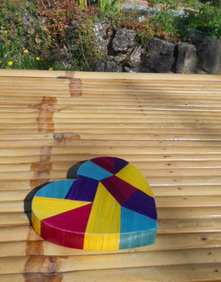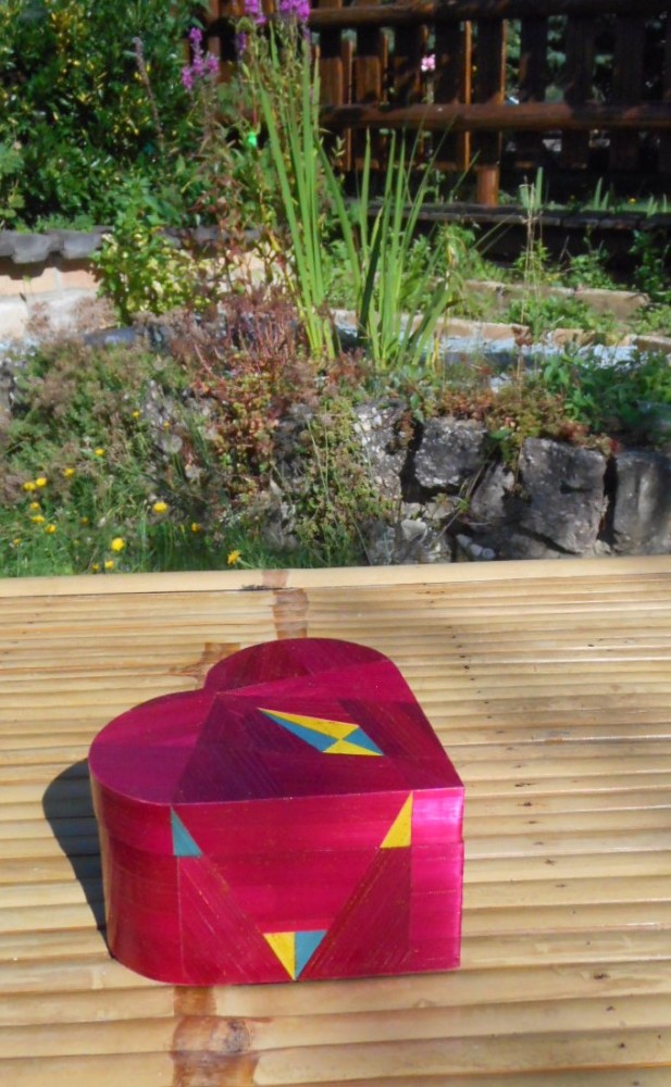 Cœur en bois recouvert de marqueterie
